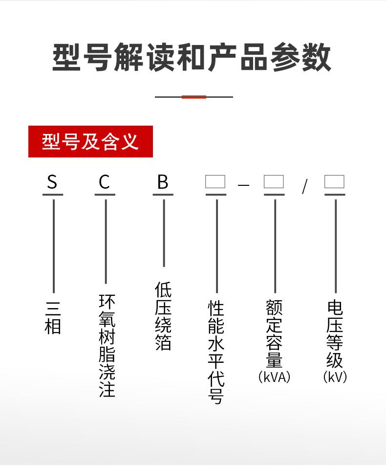 在使用SCBH19非晶合金干式變壓器時,還需要注意其一些關鍵參數。首先是額定功率。根據實際需求,選擇合適的額定功率,以確保變壓器能夠正常工作,不會發生過載或欠載的情況。其次是額定電壓。根據電網的電壓要求,選擇相應的額定電壓,以保證變壓器能夠穩定地將電能傳輸到目標設備,SCBH19非晶合金干式變壓器的具體參數如下