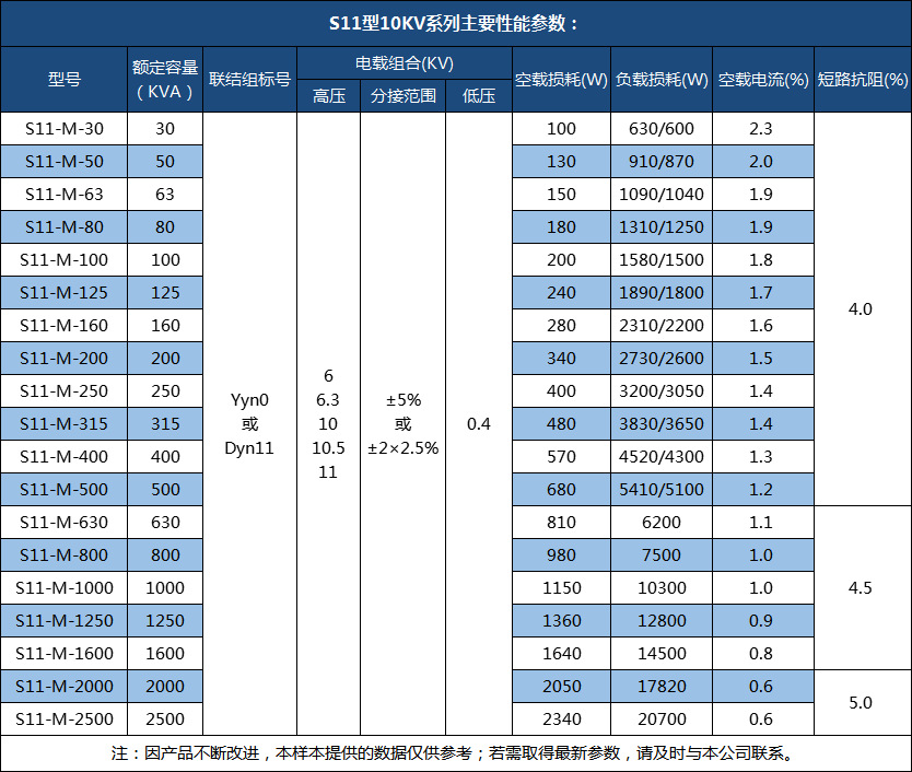 S11-250KVA油浸式變壓器性能特點